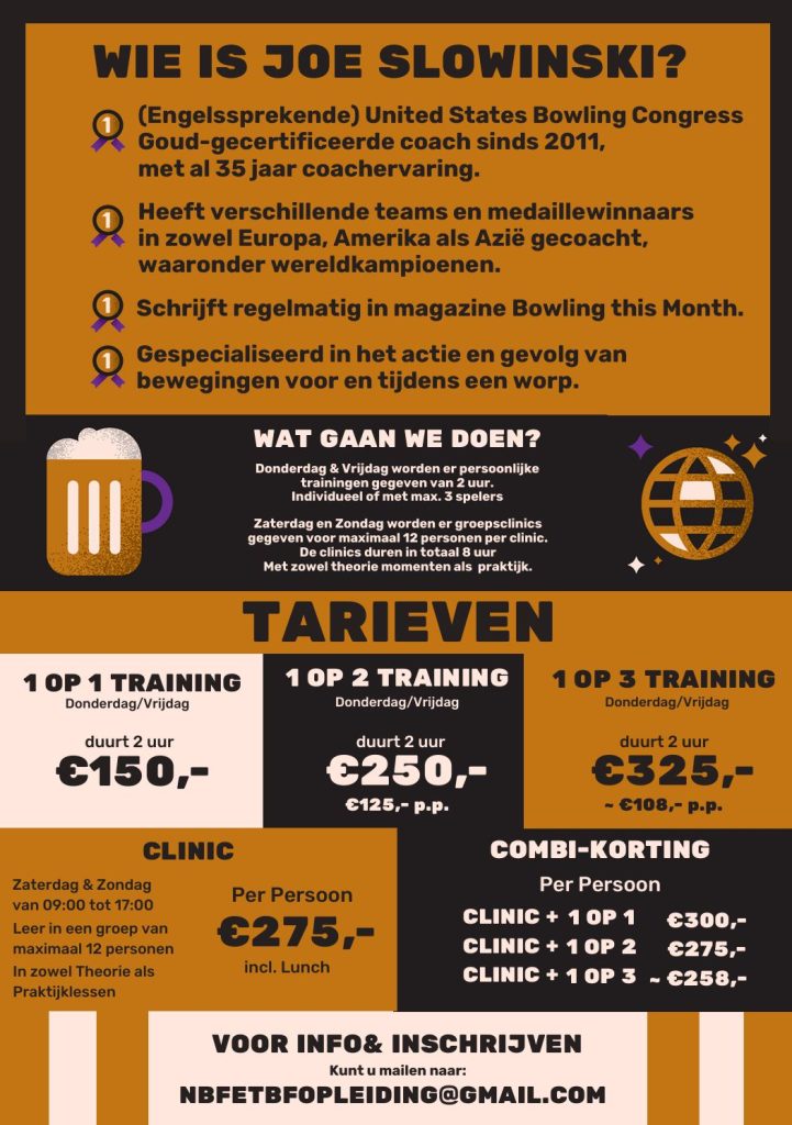 USBC gold coach Joe Slowinski komt naar Nederland. Joe Slowinski zal een aantal dagen aanwezig zijn in Bowling Olround Veenendaal en daar persoonlijke trainingen én groepsclinics verzorgen.